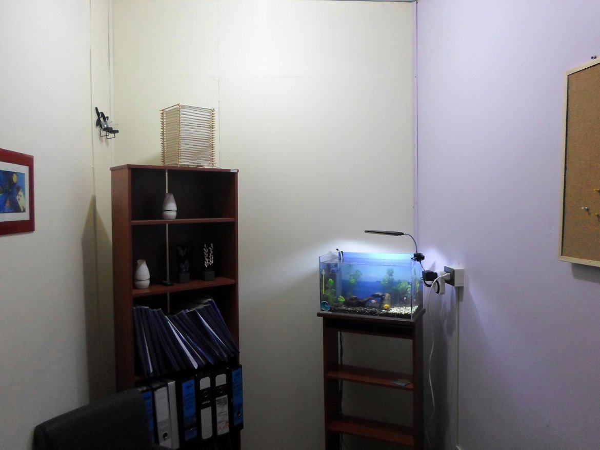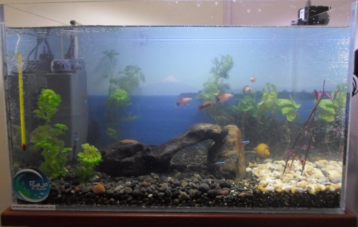 Acuario de peces de agua cálida con plantas naturales, instalado en sala de Psicoterapia. Para mayor información del proyecto visite el siguiente sitio: http://www.tdesperanza.cl/portal/noticias/index/id/292/