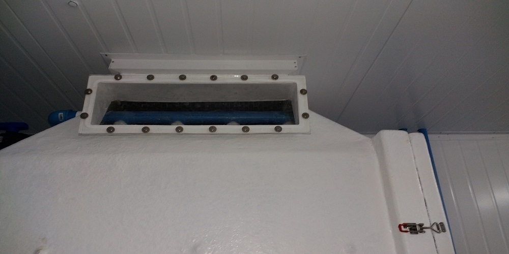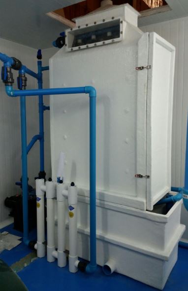 Permite controlar de manera correcta el funcionamiento interno de los aspersores. Visor en acrílico con pernos inox en Biofiltros para la Piscicultura experimental Aquagestión S.A.